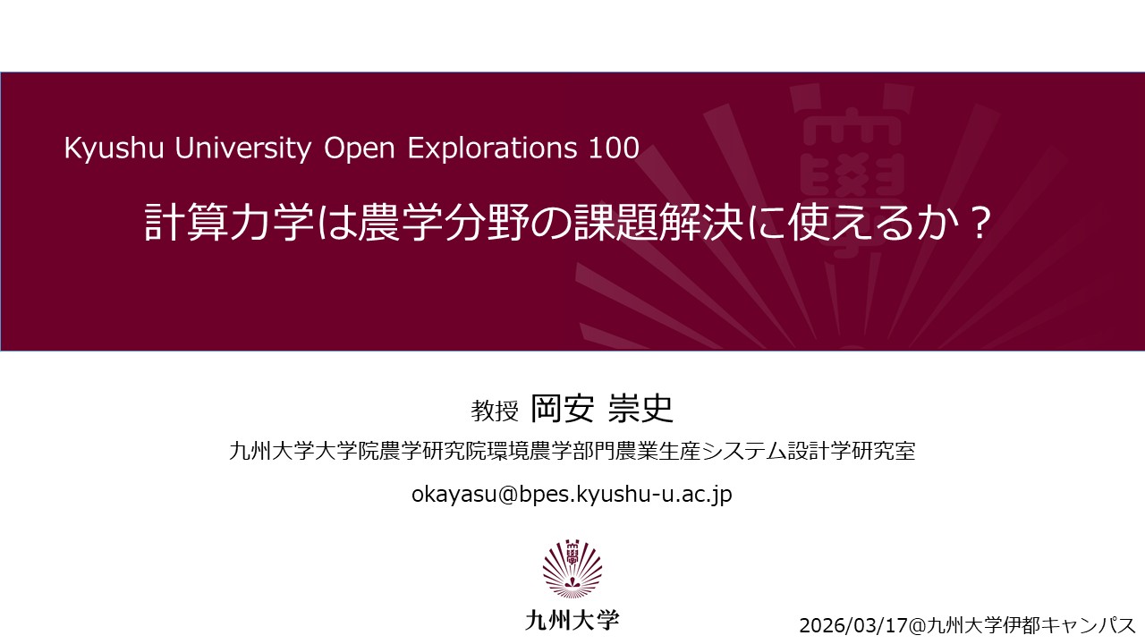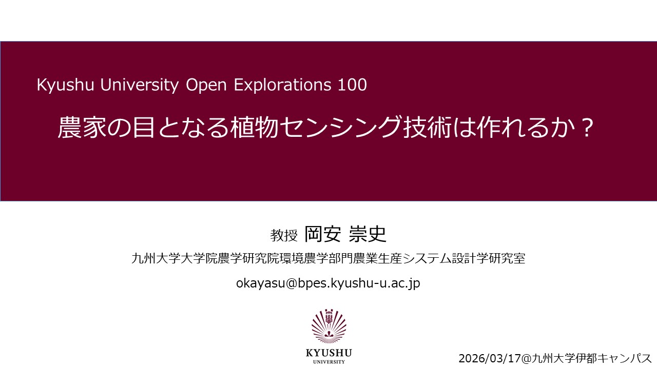 Kyushu University Open Explorations 100 (Q.O.E 100)において以下のタイトルで研究紹介を行いました。