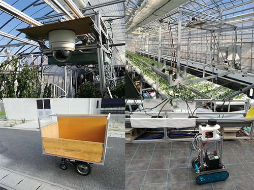 我が国の農業現場では,農業就業者の高齢化や担い手の不足により,作業者の確保が年々厳しさを増しています.このため,農業生産現場で活用できる農業支援ロボットの開発・導入が急ピッチで進められています.本研究室では,植物生育の計測や圃場内の監視をはじめ,農業資材や収穫物の運搬,農薬散布等の農作業を支援する小型で低コストなロボットに注目し,その計測・制御理論・技術やロボット本体の設計・開発を行っています.さらに,開発したロボットは,本研究室が所有する園芸施設や実際の農家圃場において実証試験を行うことにより,性能評価だけでなく,機能拡張や多面的利用技術の開発を進めています.